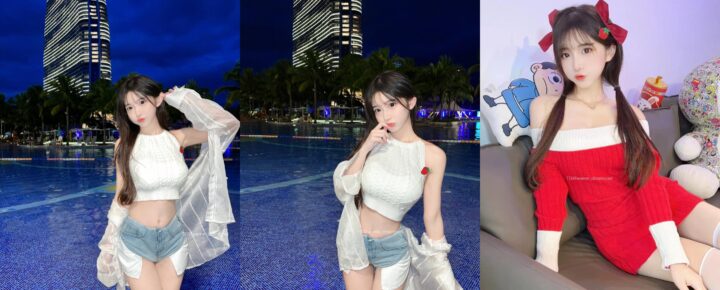亲爱的朋友们,你们知道吗?希希3这个时刻正以最独特的方式庆祝圣诞节!在这段浪漫而美丽的时光里,她不仅穿上了经典红色圣诞裙,还配上了可爱毛绒发饰,仿佛是从童话故事中走出了一个迷人而神秘的圣诞精灵。她在照片中的每一个角度都展现出不同的魅力:时而俏皮整理长发,时而娇嗔嘟嘴卖萌。红裙与白袜完美地勾勒出了她的纤细身姿,同时又带来了一丝纯真而迷人的诱惑。