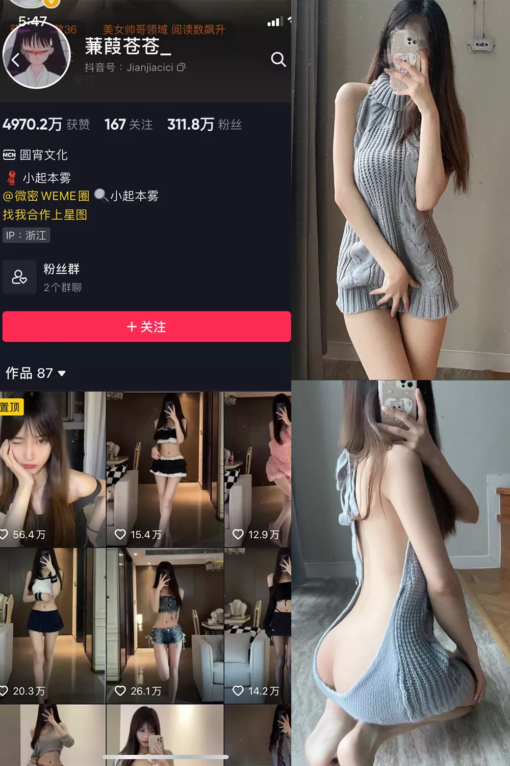 她那修长的双腿和纤细的腰身,在这件针织裙的映衬下,如同一幅艺术作品,每个细节都在悄悄撩拨着观者的心弦。蒹葭苍苍的眼神与每一个微小的动作都像是在发出信号:“注意我,我可是这场派对的明星!”仿佛她的存在让时间都为之停滞,每一秒都充满了无法抵挡的魅力,让人忍不住想要靠近。