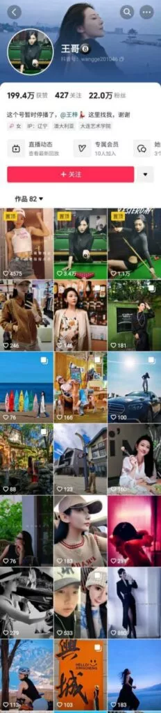 抖音上拥有22万粉丝的名媛网红王哥,辛辛苦苦塑造的精致名媛形象如今土崩瓦解。近日,她被曝光与三位金主之间的高价合作,并泄露了涉及不雅果舞的视频。