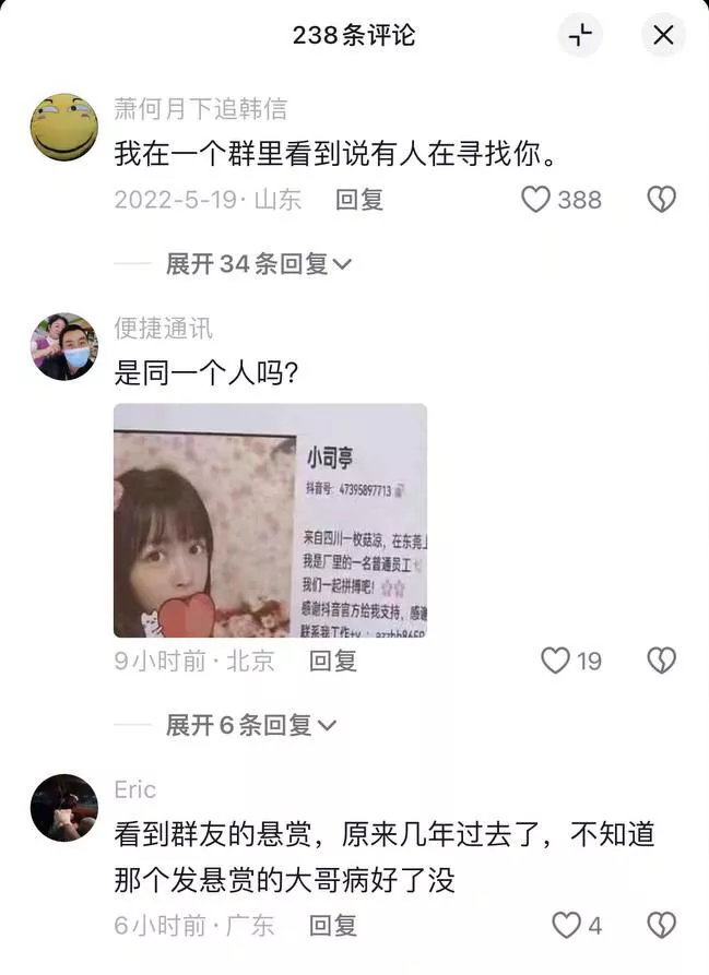 抖音主播小司亭近日在街头被张贴悬赏令。据悉,她目前在东莞正威集团富强三期担任人事一职。根据一名男子的爆料,称他与小司亭在线下发生过关系,随后出现了一些艾滋病的症状。经过医院检查,结果显示他感染了艾滋病。这一事件引发广泛关注。