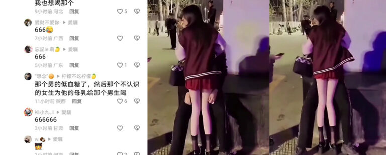 深夜街头,一名男子因突发低血糖在路边昏倒、意识模糊。众人惊慌之际,一位身着短裙、身材姣好的女子挺身而出,解开衣襟用母扔为昏迷的男子喂食,试图帮助他恢复意识。