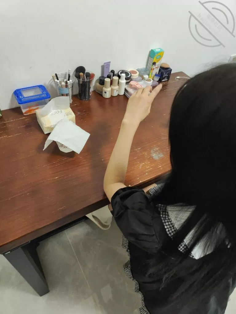 刚出差回到家,发现妹妹房间里有动静,过去看的时候发现妹妹在化妆还换上了很性感的黑丝和制服,还扎着双马尾,看起来非常可爱,一想起妹妹答应我的事,一时间有点按耐不住了,把裤子脱了看着妹妹打起了飞机。