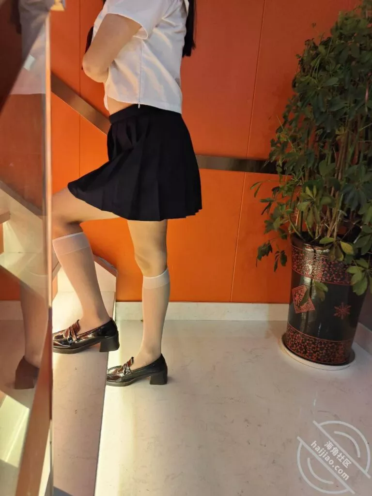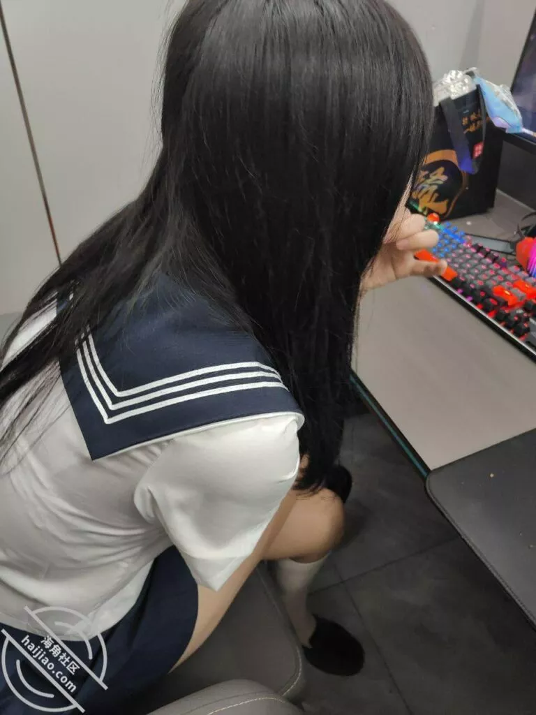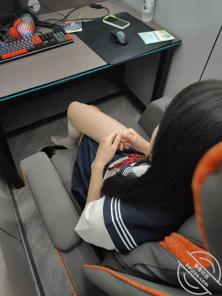 今天她出门又穿的短款的小白丝袜,一身Jk看起来确实挺可爱的。坐网吧里,回头率也挺高,关键是长的好看。偷拍了几张照片,给兄弟们养养眼。