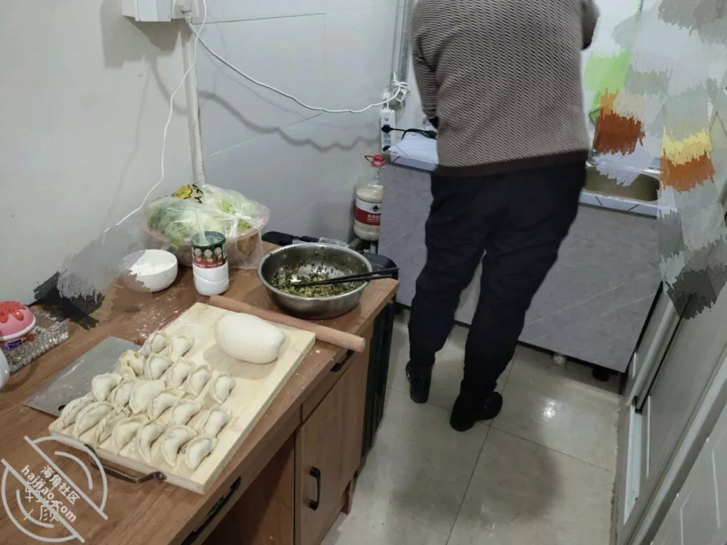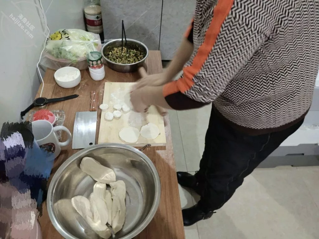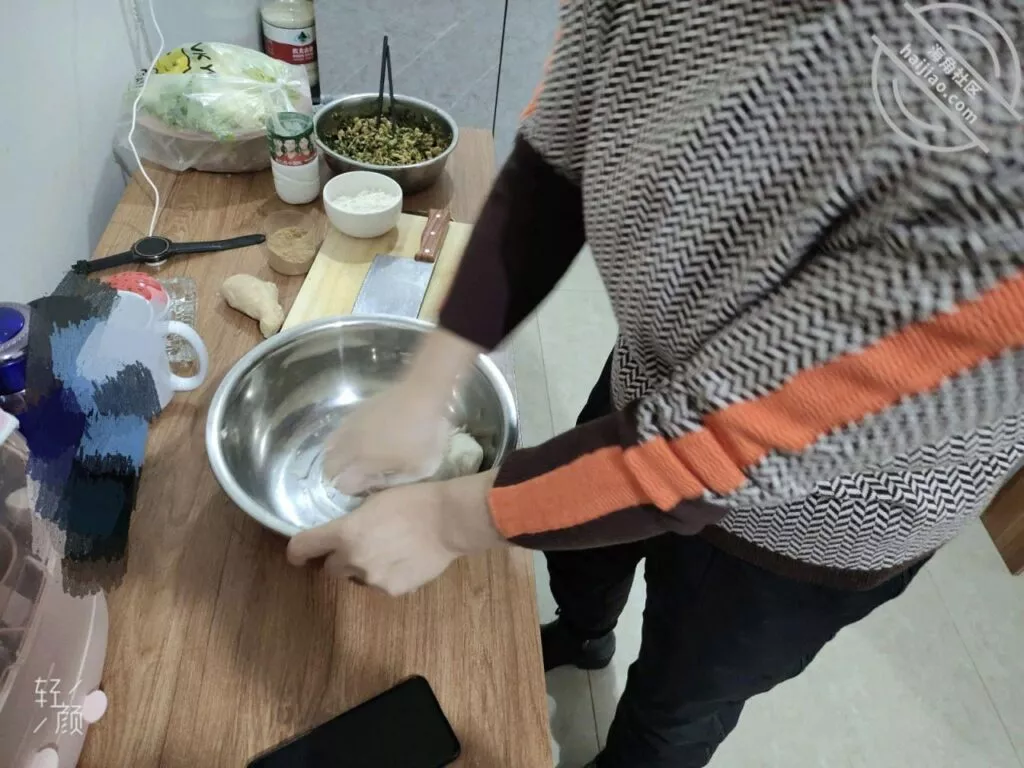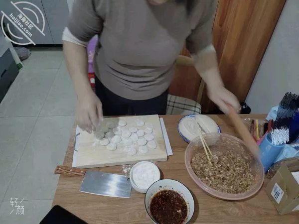 兄弟妈妈给包韭菜鸡蛋的饺子,等着美味