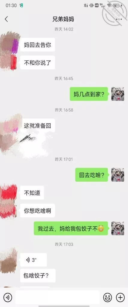 老妈在做饭包饺子,我也不会,只能躺着玩手机,哈哈
