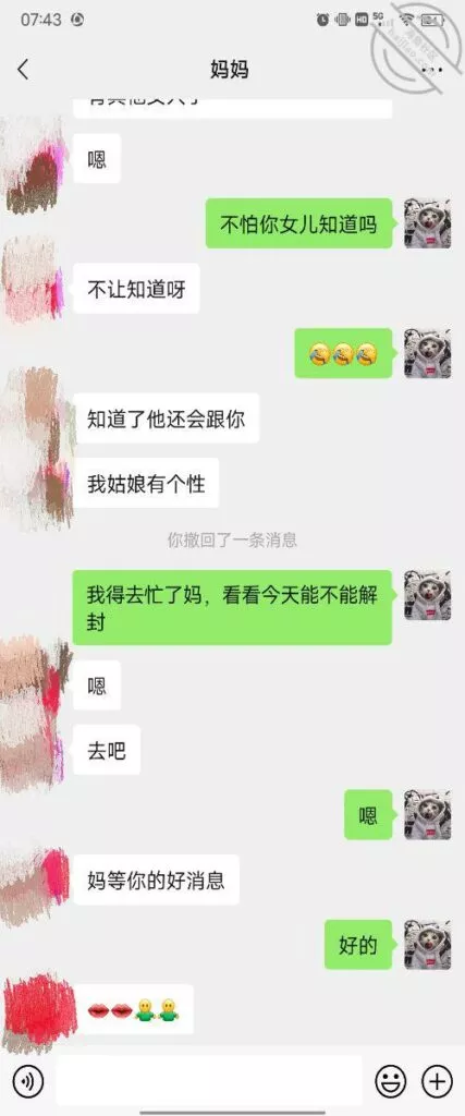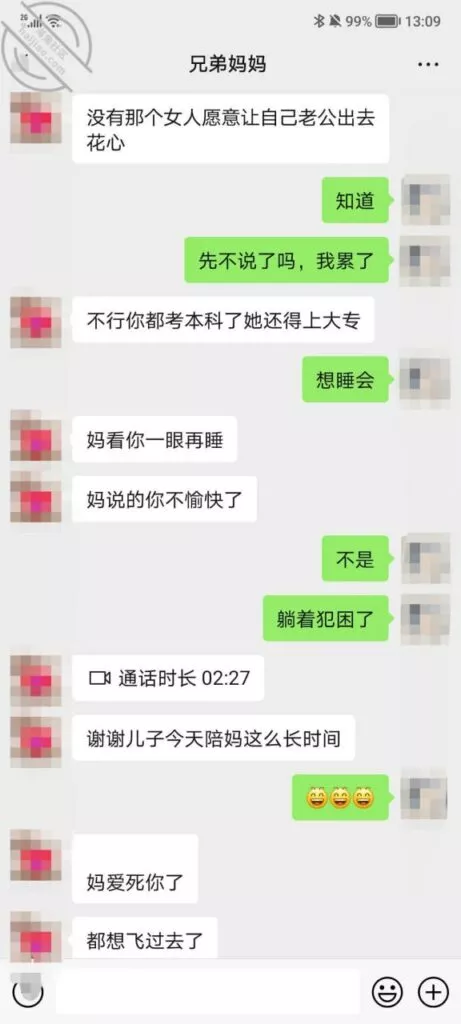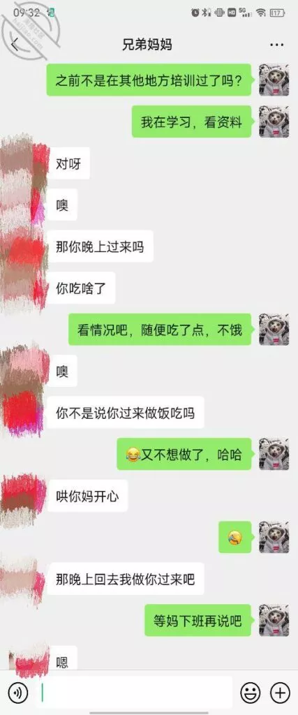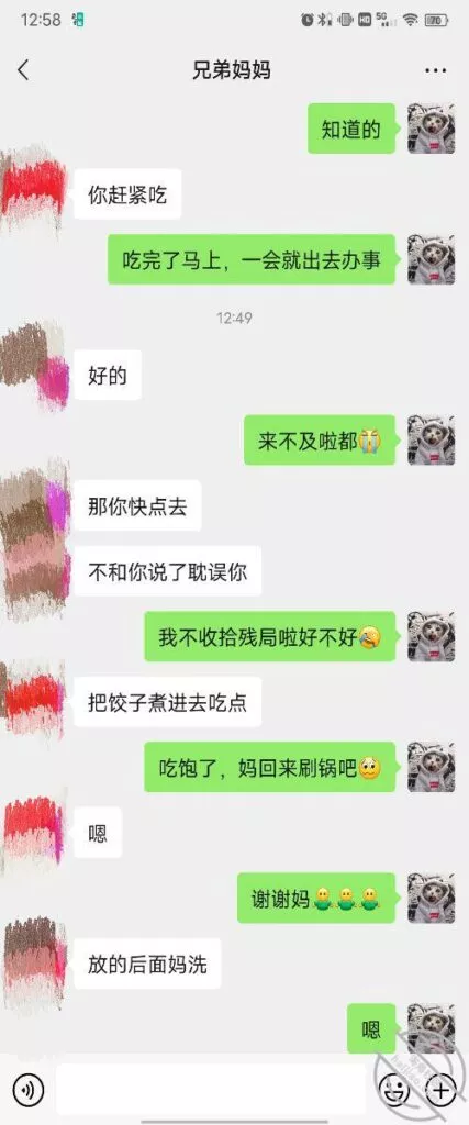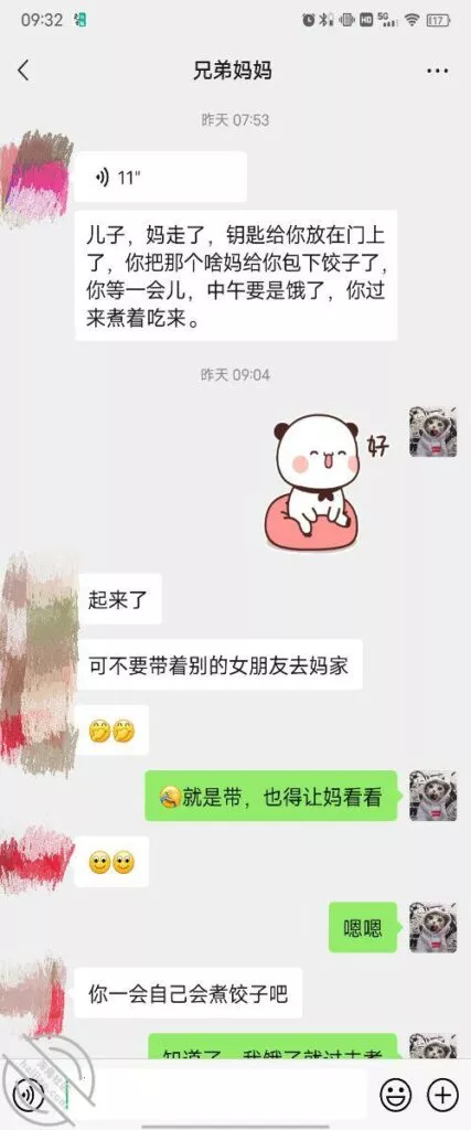 兄弟他妈妈属于那种一点不拘束的,很开明的一种人,大大方方,我很喜欢这样的性格,对我也是特别好,一个儿子儿子的喊着,特别亲的感觉,也不说只有威信聊天叫儿子,就是面对面聊天也是一个儿子儿子的叫着,我也没办法,对我好的我都感觉有点过啦,吃个饭都怕我吃不好的那种,催着吃,多吃,对我什么都特别关心