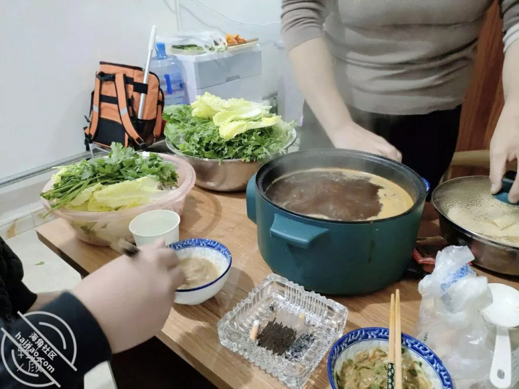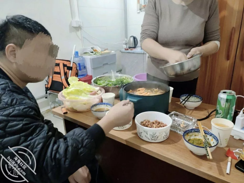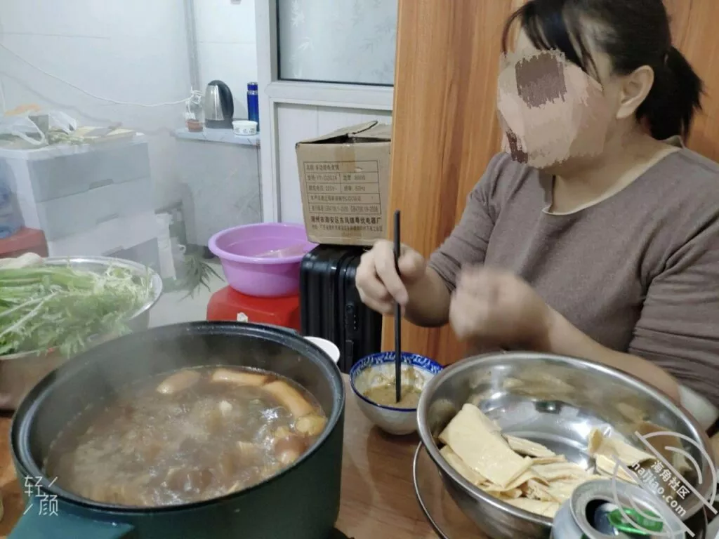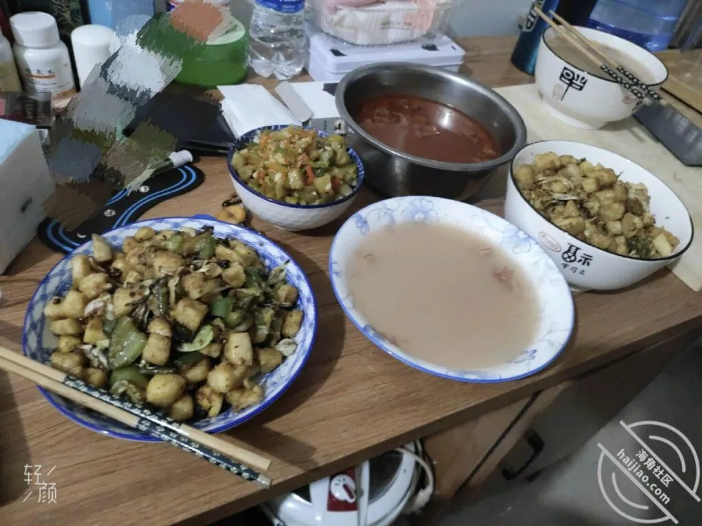 兄弟妈妈喜欢人多热闹,刚开始吃没多久,兄弟妈妈的一个同事给她发了信息,吃了几口就走了,是兄弟妈妈的一个同事(女)摔到胳膊啦,缝了几针,在家一个人不方便吃饭,这几天都是兄弟妈妈帮过去做饭,因为距离近,就帮帮忙照顾一下。