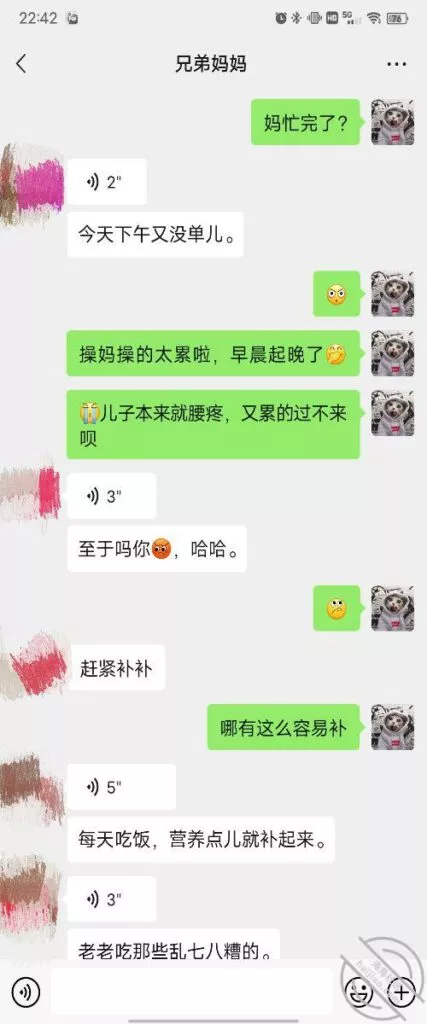 这个的聊天让我感觉是不是有戏?其实我问的是叫我过去玩吗?我故意打成叫我过去玩妈?吗和妈我故意搞错,兄弟他妈就来了一句,你还想玩妈?哈哈,后来我说,又不是玩妈,兄弟他妈说,那不需要,给我搞不懂啦,难道让我玩她,才可以吗?感觉话里有话