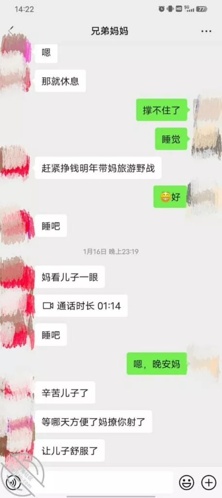 Cao兄弟妈妈的时候,一直叫儿子,让我使劲Cao妈妈,把妈妈Cao死,妈妈好想要之类的,从头叫到尾,一般人几分钟都撑不住我感觉,承受不住的,我感觉你会秒射,哈哈,我是硬撑着啊。