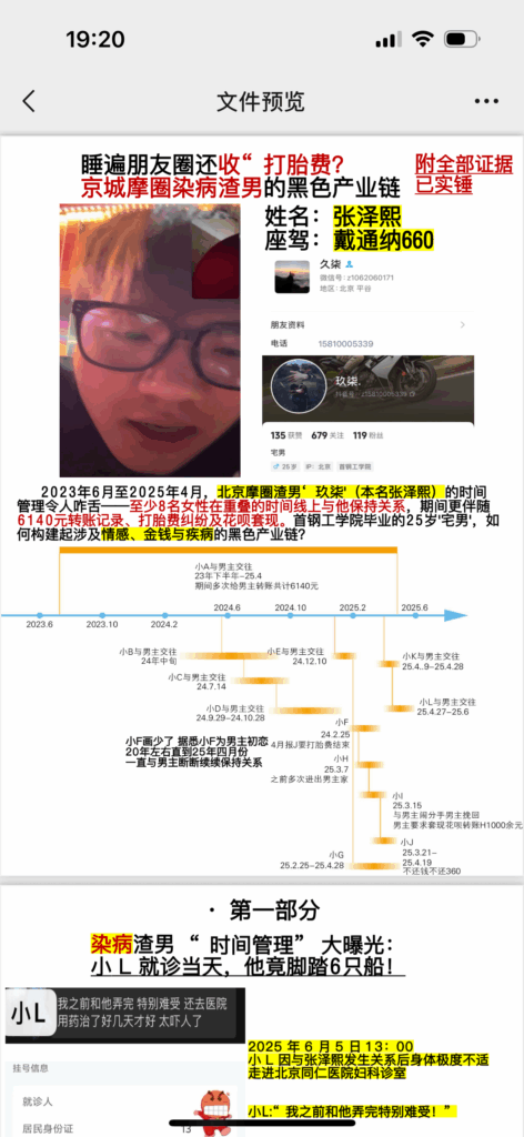 16页PPT曝光北京摩圈渣男时间管理大师张泽熙睡遍朋友圈脚踏六只船