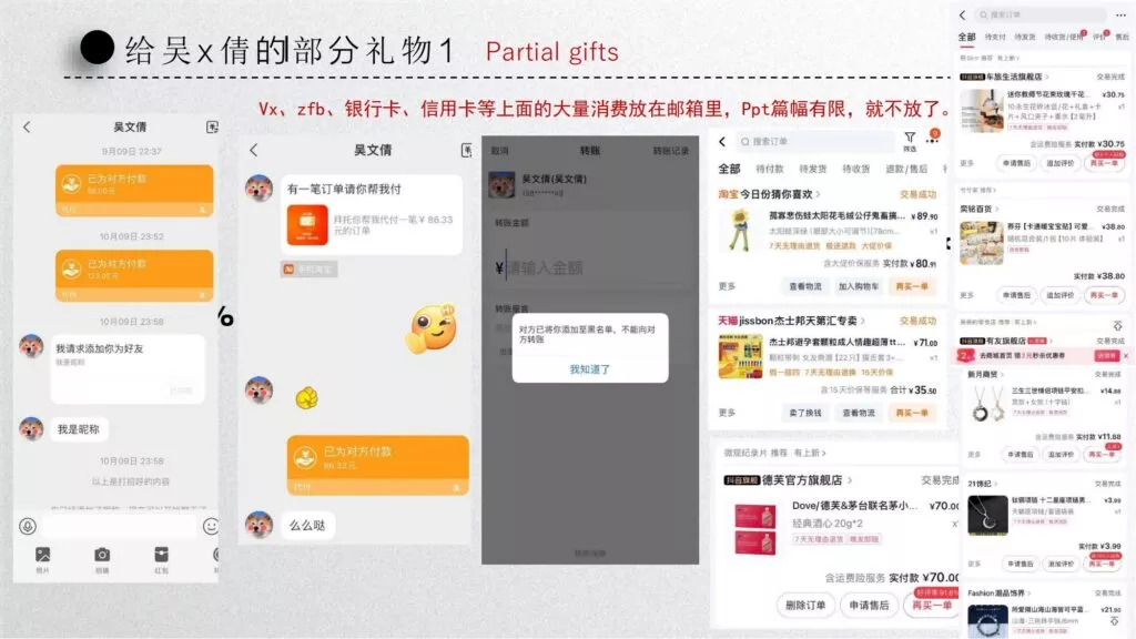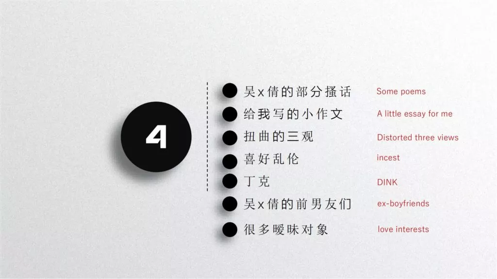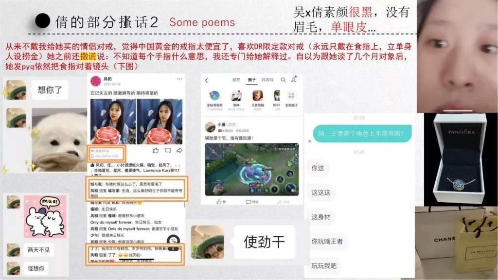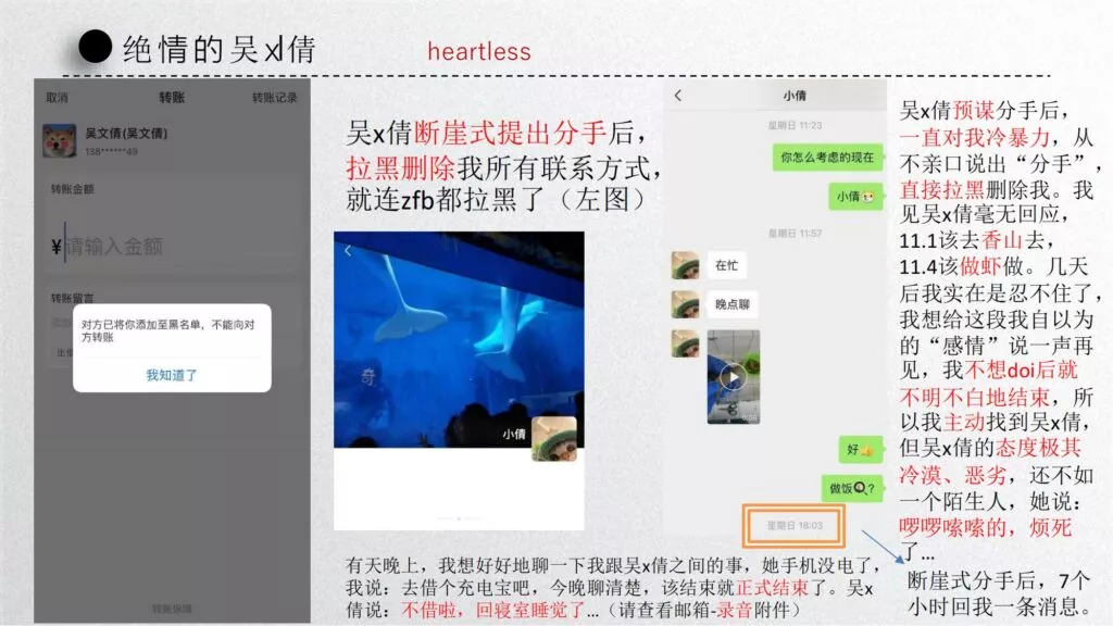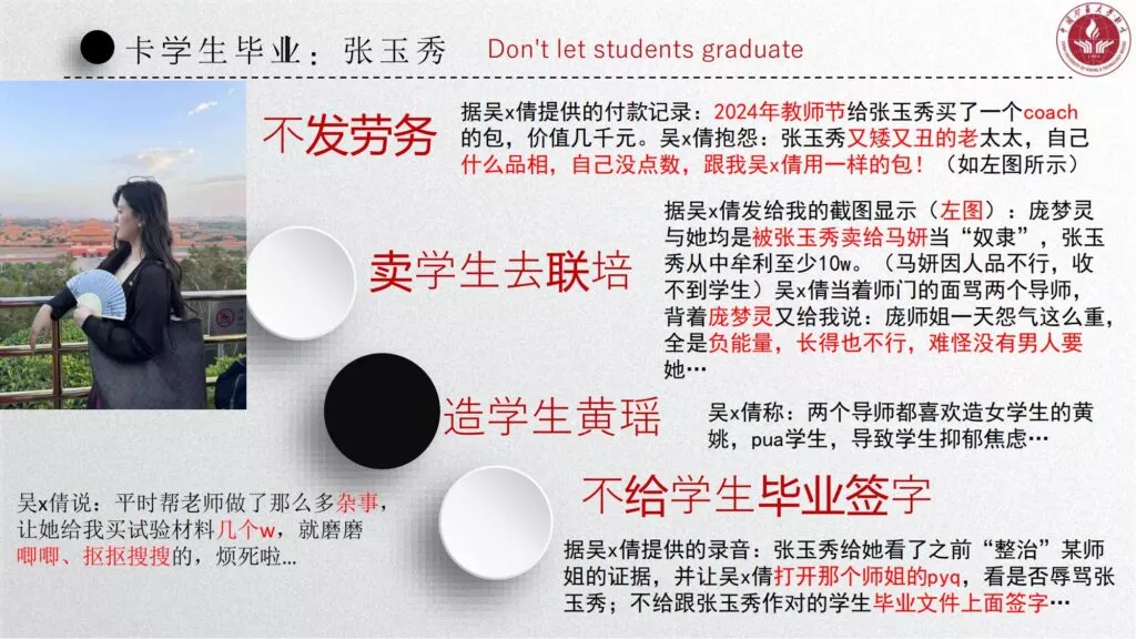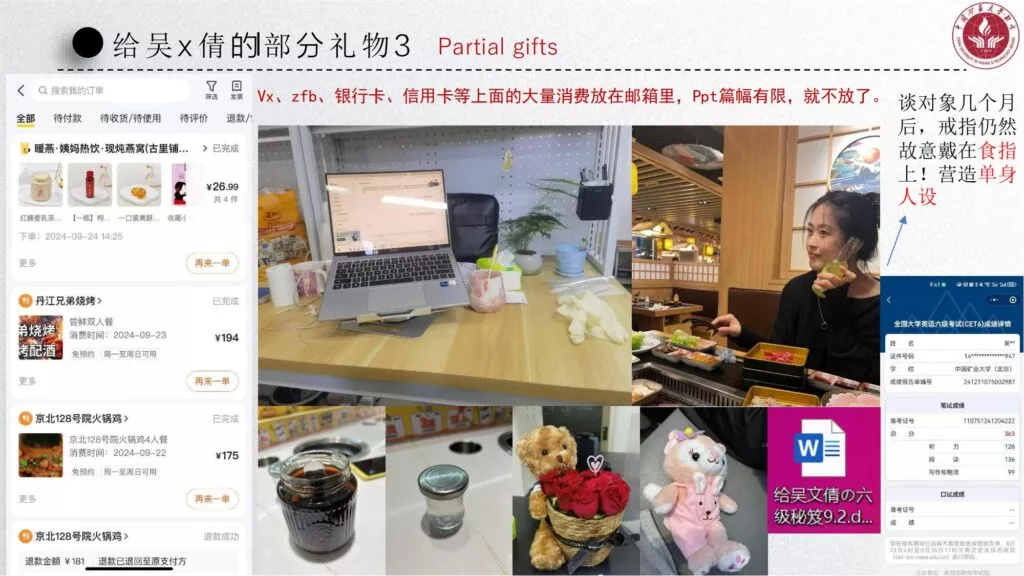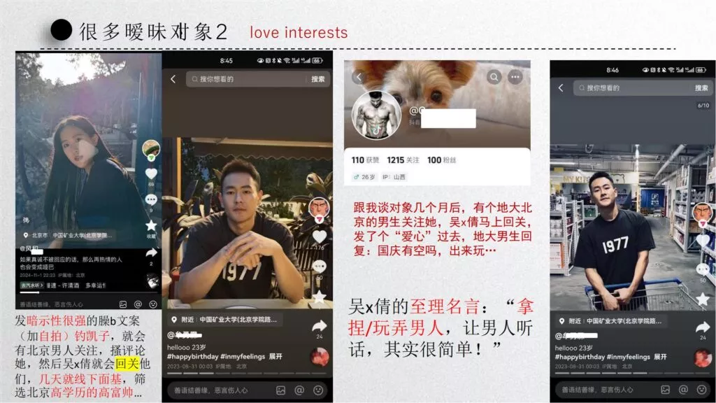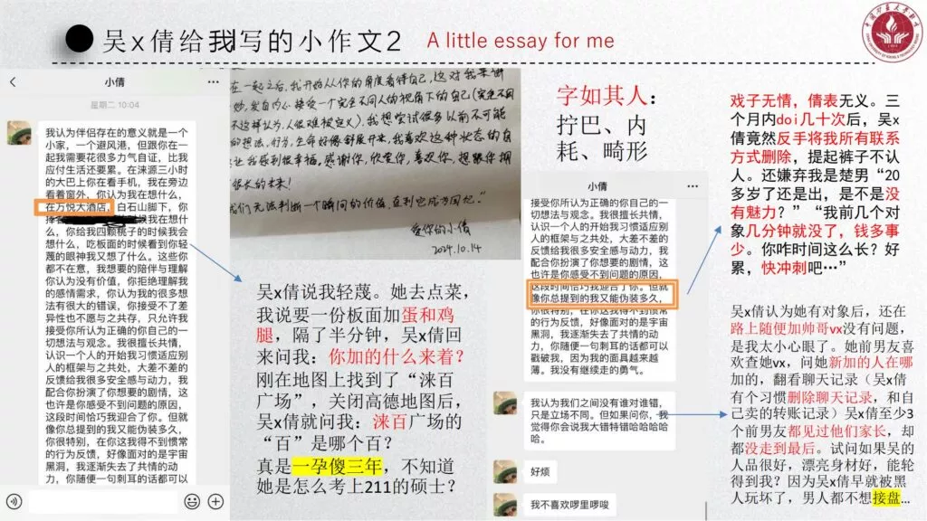 长文PPT再次引发关注,一份长达50页的PPT对矿大公交车上的吴文倩进行了严厉的抨击。她被描绘成极端拜金的女性,为了满足金钱需求在校外兼职做外围女,随叫随到。其中甚至不乏在公共场合突然脱衣露匈的惊人行为。她纵情于多位男生的感情,既不尊重导师,又涉嫌学术不端。
